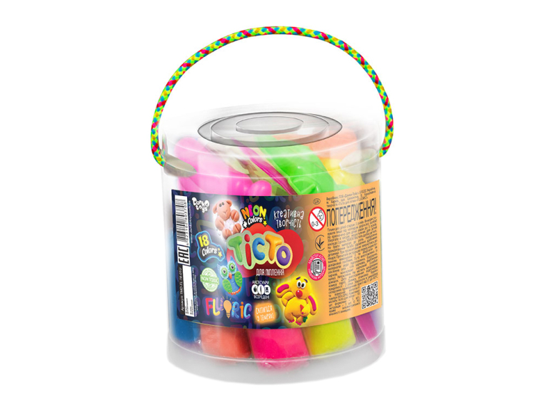 гр Креативна творчість "Тісто для ліплення "FLUORIC" TMD-FL-18-01U туба, 18 кольорів /укр/ (8) "Danko Toys"