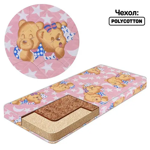 Матрац кокос поролон 11122233 полікотон "Малютка2" Сплячий ведмедик "(1) колір рожевий Homefort