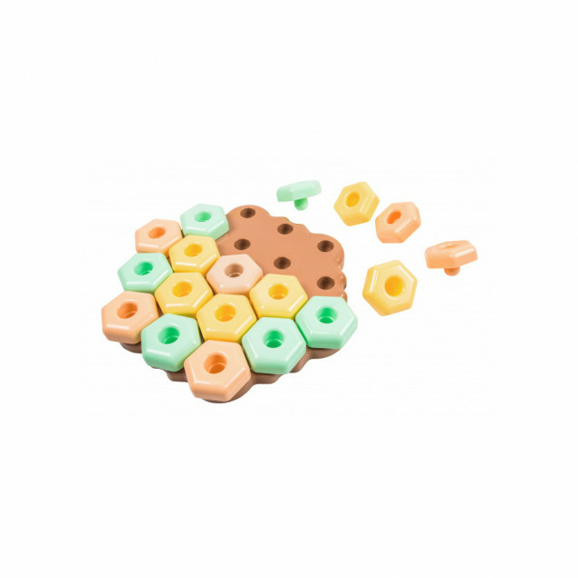 Одягаючи яскраві різнокольорові елементи на основу, можна створювати цікаві конструкції: квіточки, тортики, сніжинки, вежі, літачки та багато іншого.