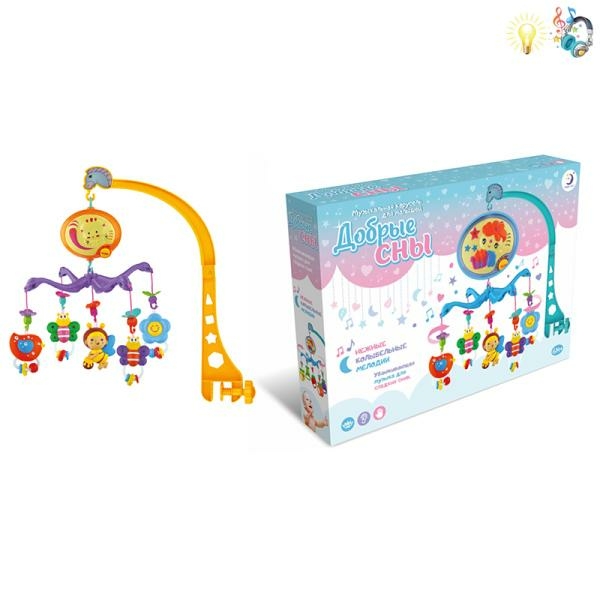 Однією з перших іграшок малюка стане каруселька (мобіль) для дитячого ліжечка: підвісні іграшки – розважають та розважають, музика – заспокоює. А різні нічнички дозволять засипати дитині спокійно та безстрашно. Основні характеристики товару: Мобіль на ліжечко "Добрі сни", музика, світло, тип живлення: на батарейках, упаковка: коробка 41*30*7,5см